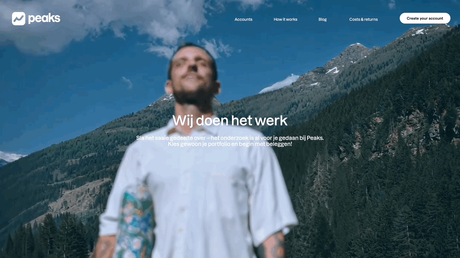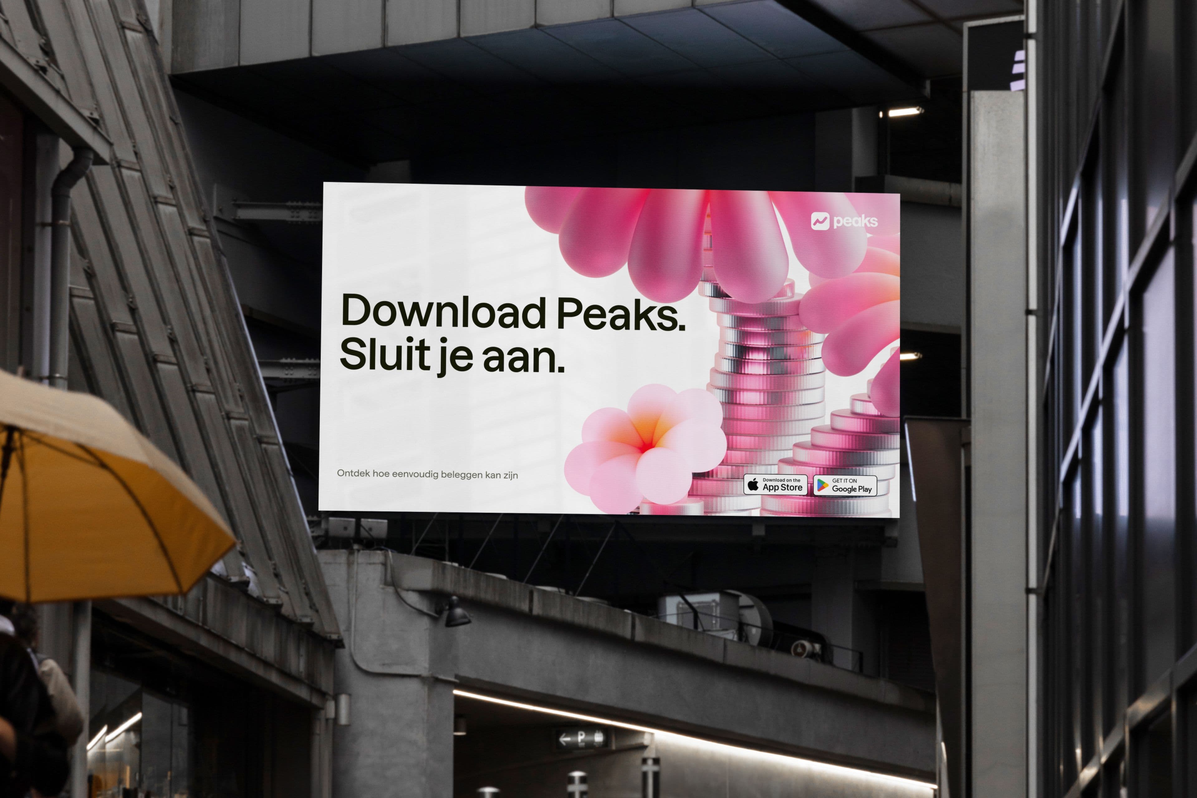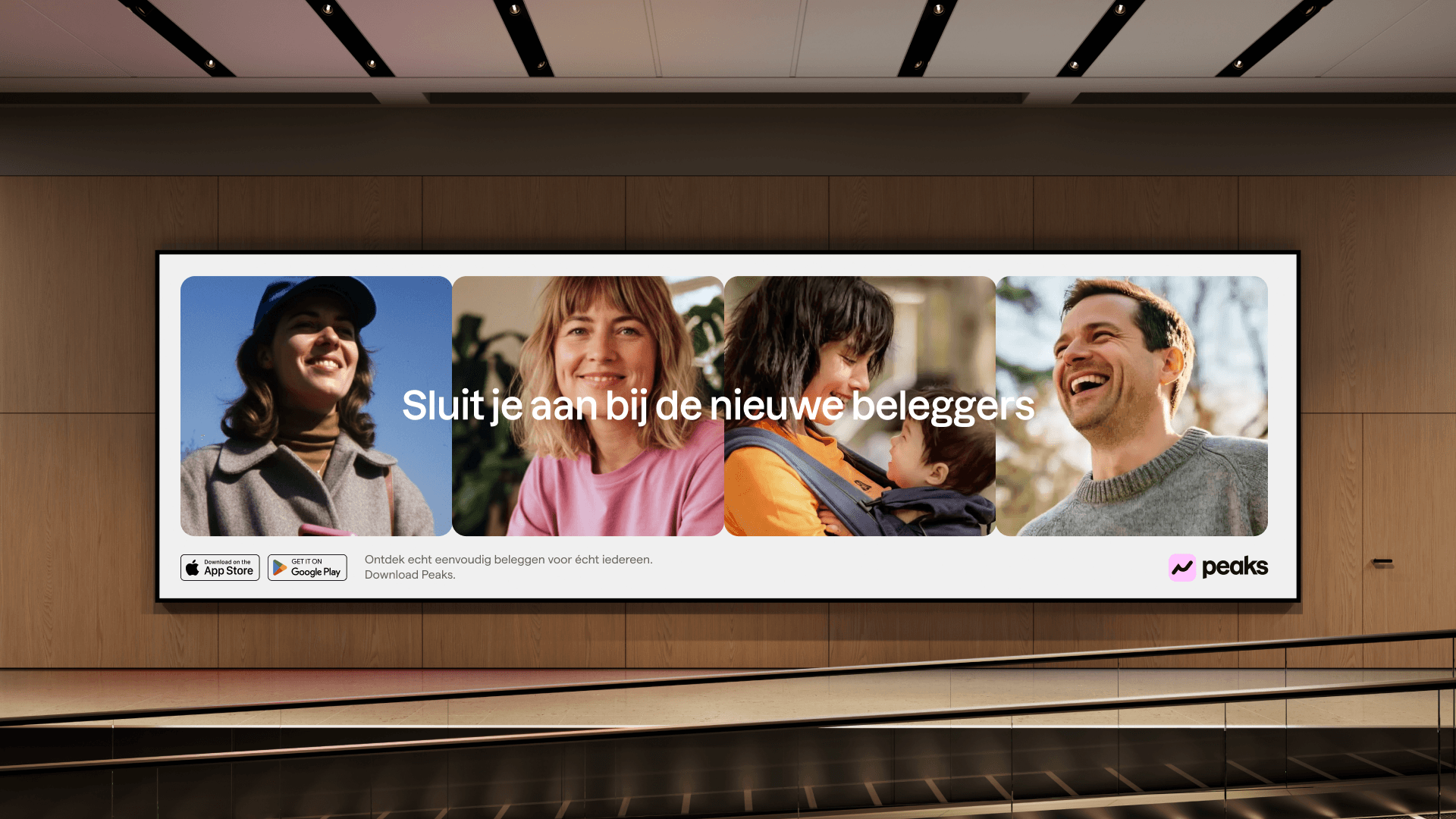 Stock investing only for the happy few? Not if you ask Peaks. They make investing 'echt eenvoudig voor echt iedereen' —accessible, optimistic and made to feel like something you want to be part of. This fresh brand strategy was the starting point for a new Peaks look and launch campaign. The new happy few is a happy everyone.