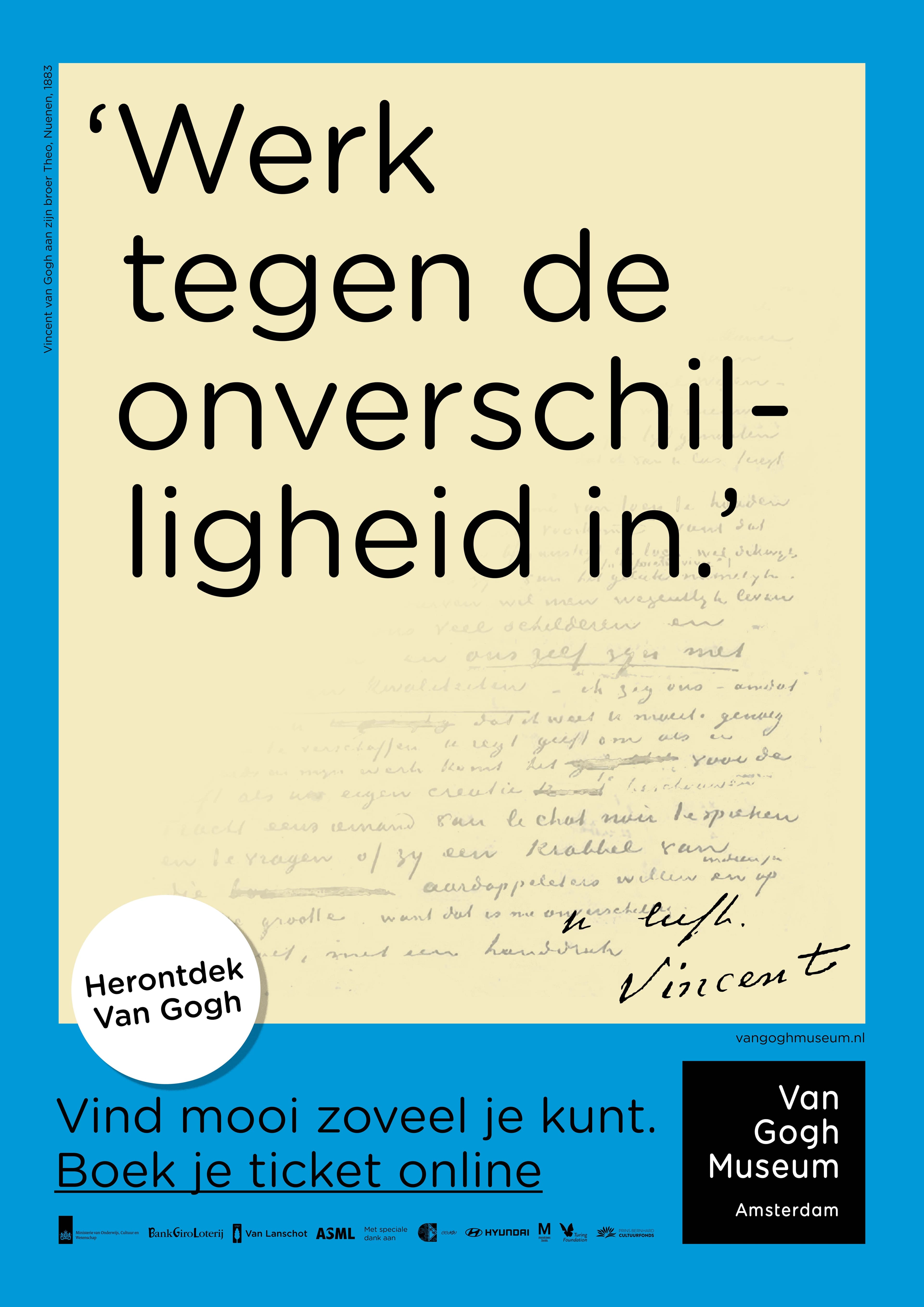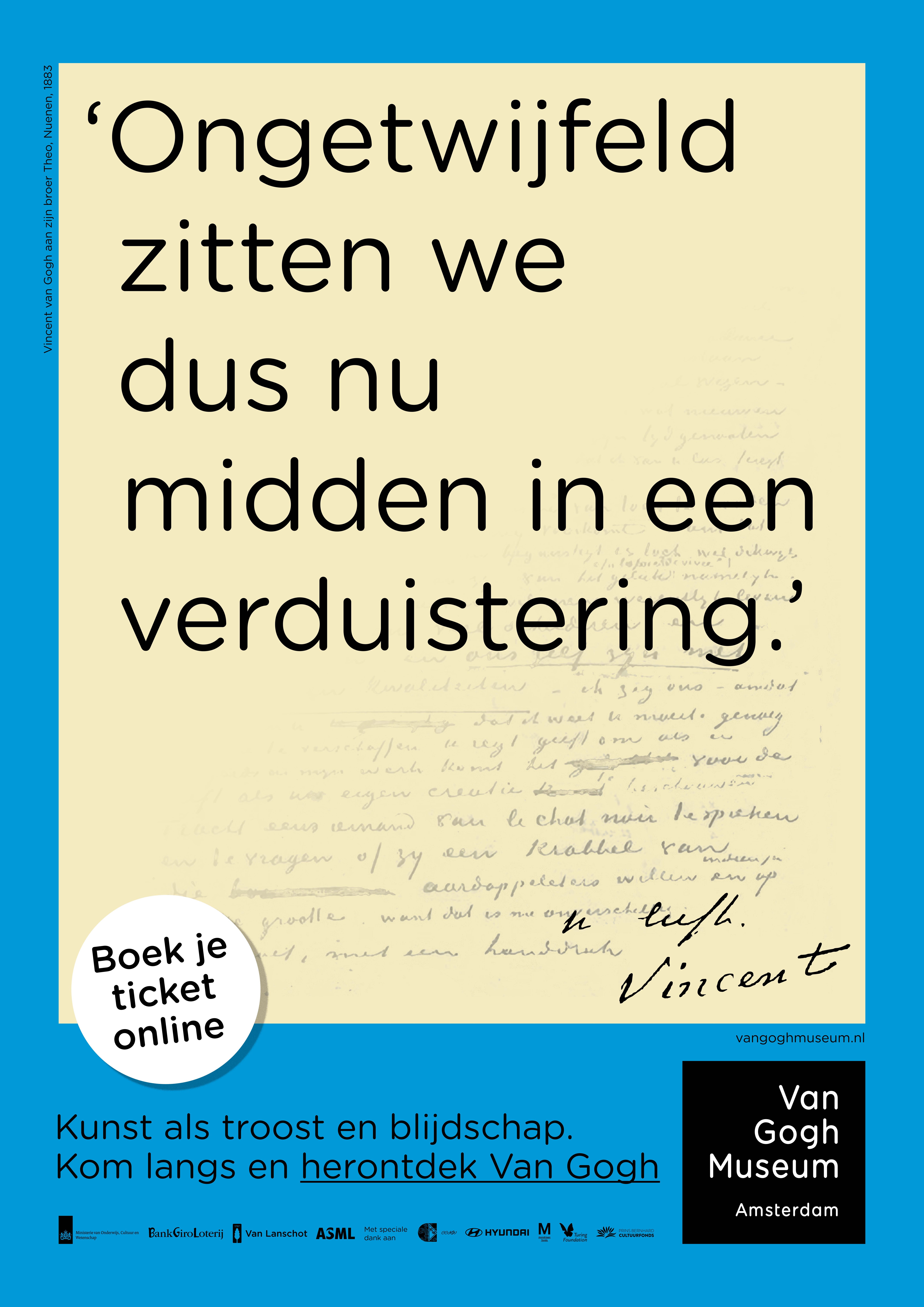 A small campaign, yet one that still pops into my mind from time to time, because it revealed a Van Gogh I hadn’t known before. In 2020, the Van Gogh Museum asked me to promote their exhibition Your Loving Vincent: Van Gogh’s Greatest Letters.